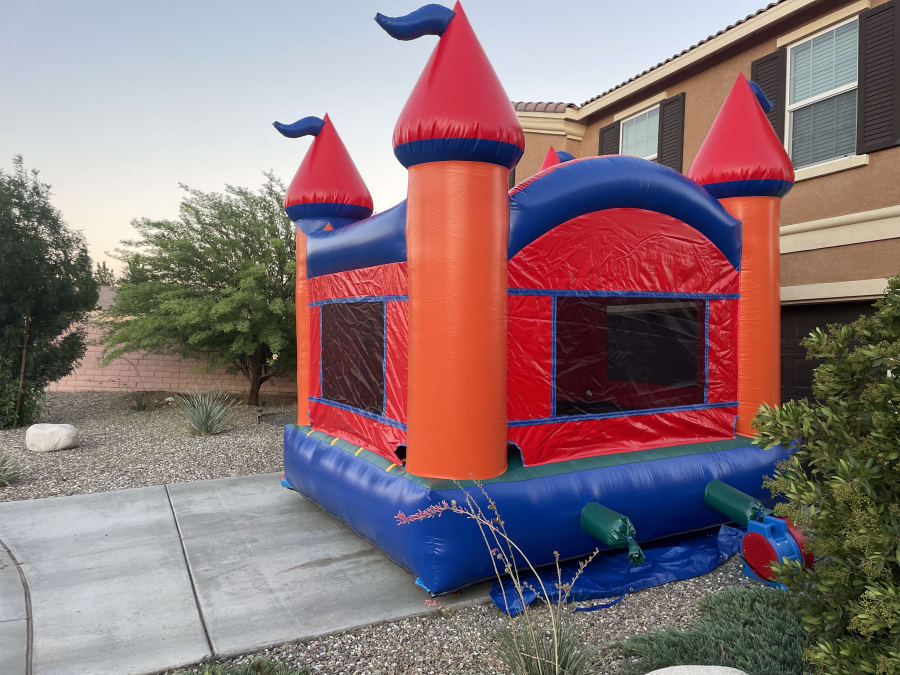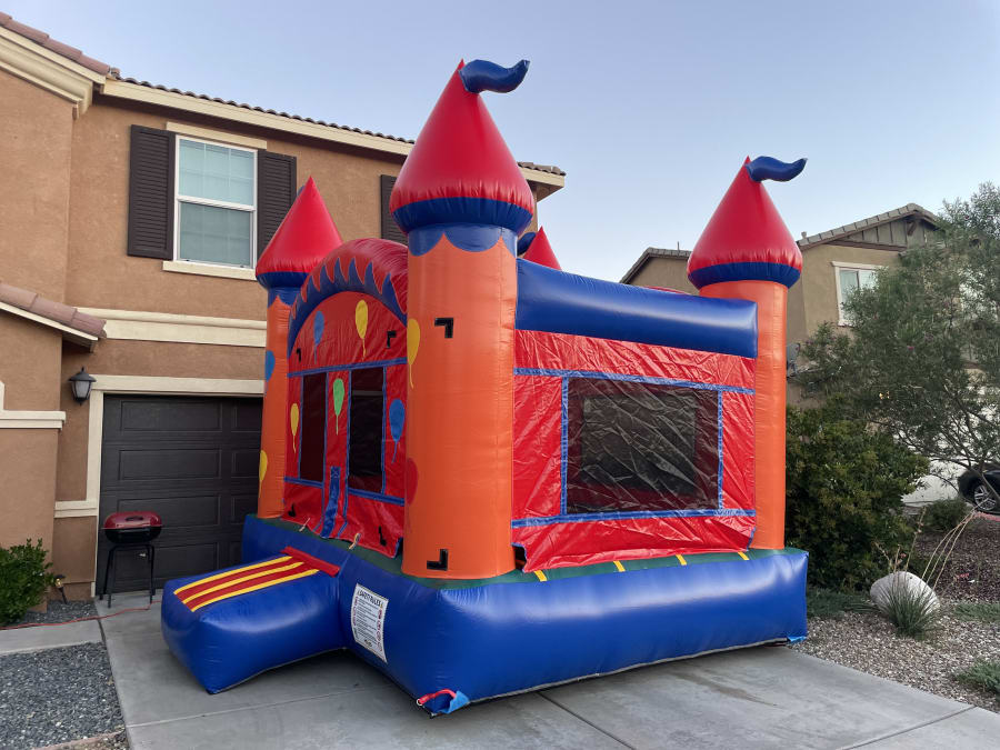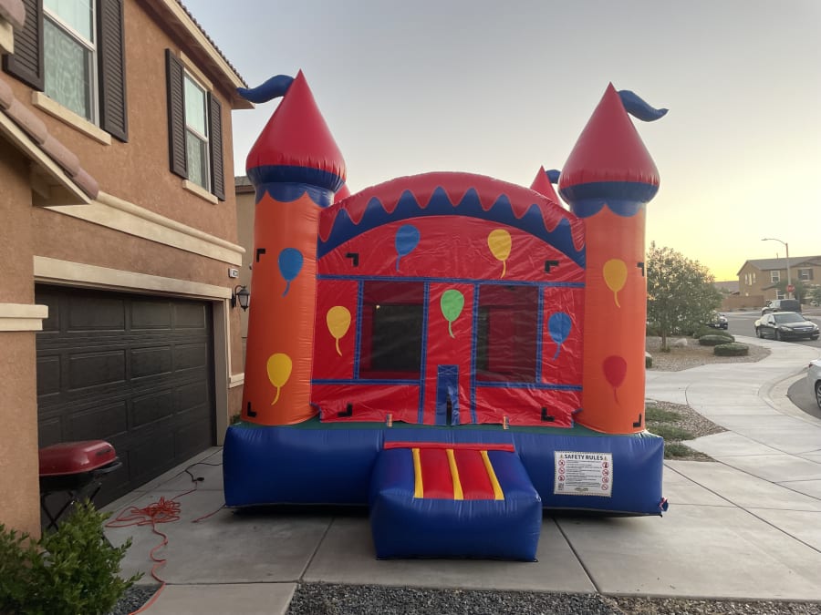 The Birthday Balloon themed Jumpers brings to the table hours of fun for kids ages 3 and up. This medium-sized jumper 13 ft x 13 ft can hold up to 8-10 kids at once time during play. It features a basketball goal on the inside along with the large jumping area. With a color scheme sure to fit any event or theme, it is a perfect solution for those backyard birthday parties.