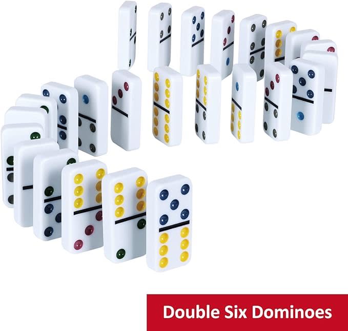28 Pcs Double 6 Dominoes' blocks size: ABOUT 1.9"L × 1.2"W × 0.3"H, Great for 2-4 Players.